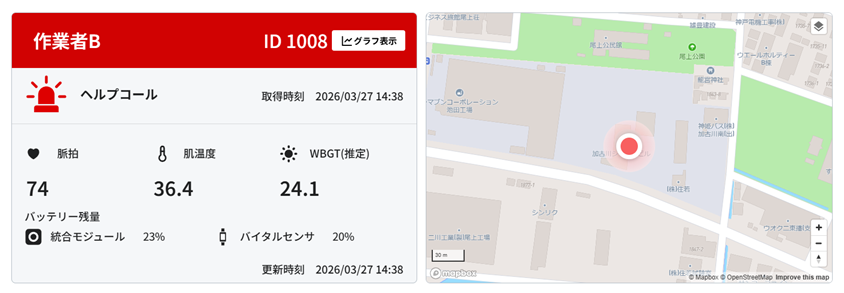 本システムは、バイタルデータによる体調変化の検知に加え、本人・グルーピングされた作業者や管理監督者へ即座に共有する通知機能も搭載。法改正への対応に適した作業者見守りソリューションとして、2026年度の販売分を開始いたしました。