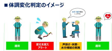 本人が自覚する前にアラートを出すことで、実効性のある休憩や水分補給の促進をサポートし